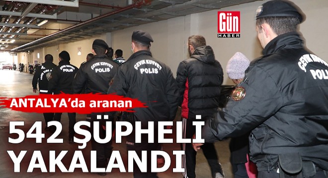 Antalya Emniyet Müdürlüğü Asayiş Şube Müdürlüğü koordinesinde, emniyet müdürlüğü birimleri hakkında yakalama emri bulunan şüphelilere yönelik denetimler gerçekleştirdi. Polisin son 1 haftada yaptığı çalışmalarda, hırsızlık, dolandırıcılık, yağma, cinsel suçlar, öldürme ve diğer suçlardan hakkında yakalama emri bulunan 366 kişi ve kesinleşmiş hapis cezası ile aranan 188 kişi olmak üzere toplam 542 kişi yakalanarak adli makamlara teslim edildi.