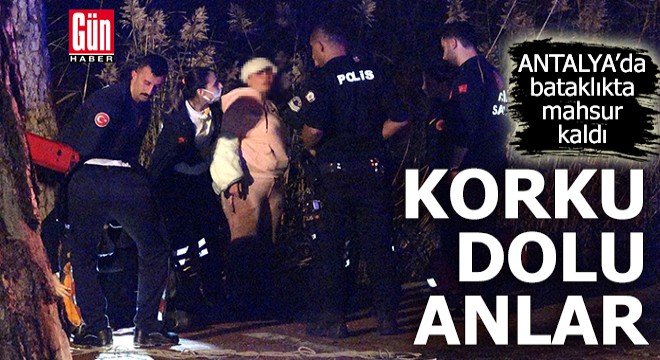 Kadınlar Plajı'na gidiş yolunda dün saat 16.30 sıralarında yürüyen Fatma D., Sarısu Çayı'nda bataklığa saplandı. Fatma D., tüm çabalarına rağmen bulunduğu yerden çıkamayınca saat 20.00 sıralarında telefonla 112 Acil Çağrı Merkezi'ni aradı. İhbarla adrese ekipler sevk edildi. Kısa sürede Fatma D.'nin bulunduğu yere gelen itfaiye ekibi, kurtarma çalışmalarına başladı. Vince kendisini bağlayan bir itfaiye eri, diğer arkadaşlarının yardımıyla kalçasına kadar bataklığa saplanmış haldeki Fatma D.'nin yanına gitti. Yarım saatlik çalışmanın ardından Fatma D.'yi bulunduğu yerden çıkaran itfaiye eri, kendisiyle beraber vince bağladıktan sonra güvenli alana çıkardı. Sağlık ekibinin kontrolünün ardından hastaneye gitmeyi kabul etmeyen Fatma D., ifadesine başvurulmak üzere polis merkezine götürüldü.