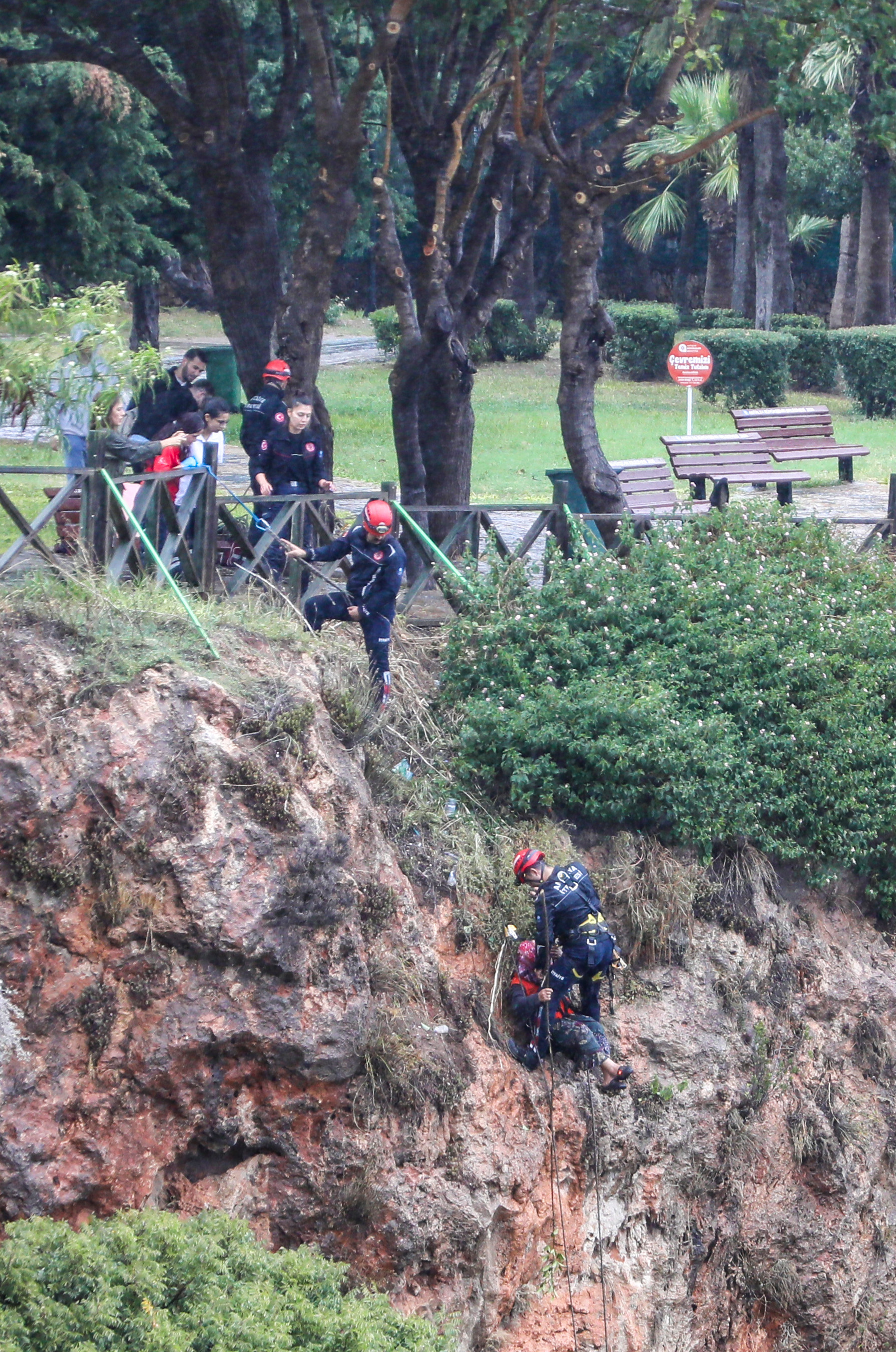 Olay, saat 16.00 sıralarında Muratpaşa ilçesindeki Atatürk Kültür Parkı içerisinde yer alan falezlerde meydana geldi. Öğle saatlerinde alt kısımdan falezlere doğru tırmanan Nubar B., bir süre sonra inmeye çalışsa da başarılı olamadı. Çevredekilere sesini duyurmaya çalışan kadını duyan bir kişi, durumu 112 Acil Çağrı Merkezi'ne bildirdi. İhbar üzerine olay yerine itfaiye ve sağlık ekipleri sevk edildi.