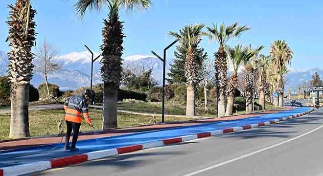 Antalya’nın doğa harikası falez kıyı bandında plajları, Deniz Yüzü, Dağ Yakası ve Kültür kafeleri, Antalya Lokantası ve parklarıyla bütünlüklü bir yaşam alanı oluşturan Muratpaşa Belediyesi, yaklaşık 5 kilometrelik eski Lara Caddesi’nde bisiklet yolunu yeniden boyadı. Deniz kenarı boyunca devam eden bisiklet yolunda çalışmalar günün erken saatlerinde başladı. Ekipler bir yandan yolu maviye boyadı diğer yandan bozulan kısımları tamir etti.