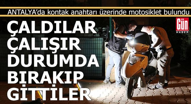 Olay, dün saat 21.00 sıralarında Kepez ilçesine bağlı Kuzeyyaka Mahallesi 2506 sokak üzerinde meydana geldi. Sokak üzerinde çalışır vaziyette plakasız bir motosikletin uzun süredir durduğunu görenler, durumu 112 Acil Çağrı Merkezi'ne bildirdi. İhbarla bölgeye polis ekipleri sevk edildi. Bölgeye gelen polis ekipleri motosikletin şasi numarasından çalıntı olduğunu tespit edip, bölgeye olay yeri inceleme ekipleri istedi. Olay yeri inceleme ekipleri de motosikletin gövdesi ve ön motor kısmında fırça ve bant ile parmak izi çalışması yaptı. Olay yeri inceleme ekiplerinin çalışmalarının ardından çalıntı motosiklet, çekici yardımı ile polis merkezine götürüldü.