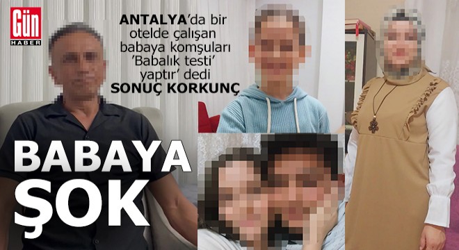 Antalya’da bir otelin mutfağında çalışan Hüseyin A., 17 yıldır evli olduğu eşi 3 çocuk annesi Ş.T. (33) ile geçen yıl ekim ayında anlaşmalı olarak boşandı. Boşanmanın ardından Hüseyin A, komşularının, çocukları için DNA testi yaptırmasını söylemesi üzerine avukatı aracılığıyla Antalya 13’üncü Aile Mahkemesi’ne babalık davası açtı. Mahkeme, çocuklar E.A. (15), H.A. (12) ve E.A.’nın (9) DNA testlerinin yapılması için Antalya Adli Tıp Grup Başkanlığı’ndan inceleme istedi. Çocuklardan alınan örnekleri inceleyen biyoloji ihtisas dairesi, DNA profil karşılaştırması sonucunu geçen şubat ayında mahkemeye gönderdi. Sonuçlara göre Hüseyin A.’nın, oğlu E.A.’nın yüzde 99,99 ihtimalle biyolojik babası olduğu tespit edildi. Hüseyin A.’nın kızları H.A. ile E.A. için ise biyolojik babalığı reddedildi.