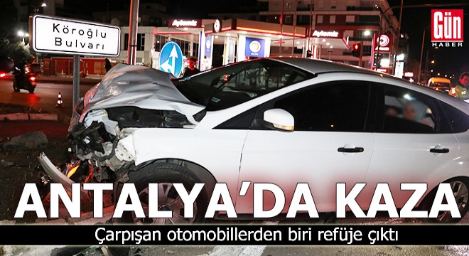 Kaza, dün saat 20.00 sıralarında Muratpaşa ilçesine bağlı Kızılarık Mahallesi Köroğlu Bulvarı üzerinde meydana geldi. Mustafa M.'nin kullandığı 07 SJ 028 plakalı otomobil Karacaoğlan Caddesi'nden Köroğlu Bulvarına gittiği sırada Bahtiyar C.'nin kullandığı 35 AKB 525 plakalı otomobille çarpıştıktan sonra refüje çıktı. Kazayı görenlerin durumu 112 Acil Çağrı Merkezi'ne bildirmesi üzerine gelen sağlık ekibi 35 AKB 525 plakalı otomobilden çıkartılan 1 yaralıya müdahale etti. İsmi öğrenilemeyen yaralı ambulansta ilk tedavisinin ardından hastaneye götürüldü. Otomobillerin çekiciyle kaldırılmasının ardından yol trafiğe açıldı.