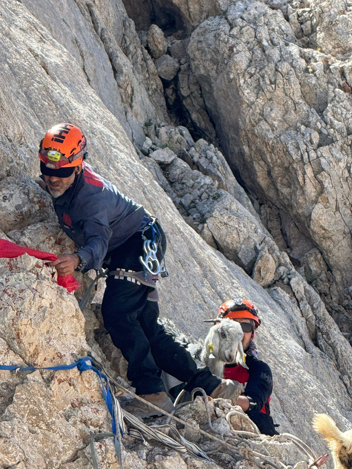 Gündoğmuş ilçesi Karabul Susambeli Yaylası'nda 9 gündür 2 bin 600 metre yükseklikteki sarp kayaların bulunduğu dağlık bölgede mahsur kalan 5 keçinin kurtarılması için Alanya İHH Arama Kurtarma ve Antalya ekipleri harekete geçti. İHH ekipleri, keçilerin mahsur kaldığı sarp arazide ipli sistem ve havai hat kurarak kurtarma çalışması yürüttü. Yaklaşık 5 saat süren operasyon sonunda keçilerin tamamı sağlıklı şekilde bulunduğu yerden alınarak, güvenli bölgeye indirildi. Kurtarılan keçiler, su içirildikten sonra sahibi Hasan Hüseyin Öztürk'e teslim edildi. Operasyonun başarıyla tamamlandığını açıklayan İHH Alanya Arama Kurtarma Başkanı Ramazan, ekiplerin doğa ve hayvan kurtarmalarında her zaman görev almaya hazır olduğunu belirtti.