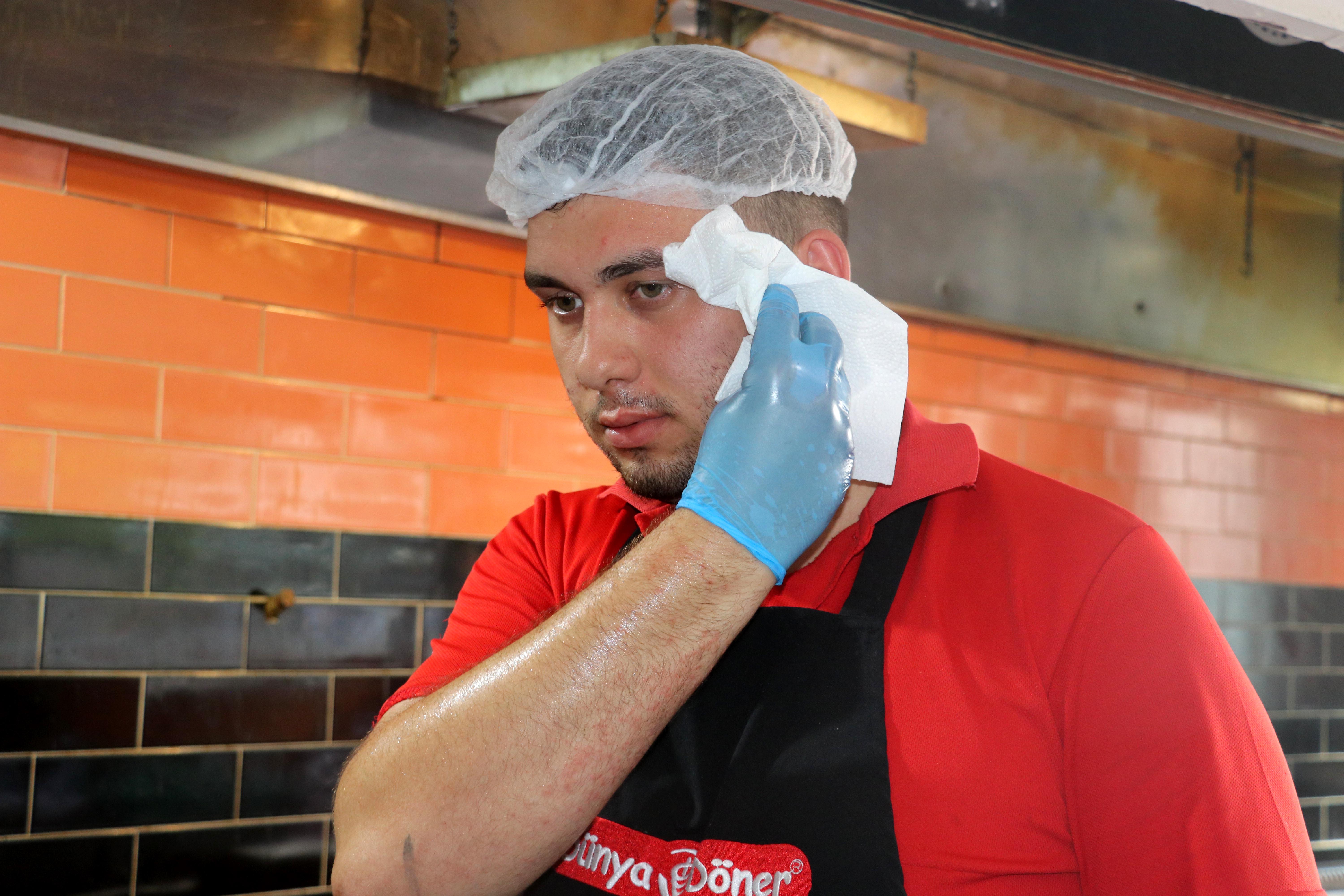 Türkiye'nin en sıcak illerinden Antalya'da yaz mevsimi etkisini artırırken, bazı meslek grupları zor günler yaşıyor. Hava sıcaklığının 40 dereceyi aştığı kentte, döner ustaları ocak ve ızgaranın önünde ter döküyor. Döner ustaları, kavurucu sıcağa rağmen işlerini sürdürmeye çalışırken; sıcaklığın etkisiyle çırak bulmakta da zorlandıklarını söylüyor. 6 yıldır döner ustalığı yapan Yunus Emre Keskin, Antalya'da bu işi yapmanın ekstra sabır ve dayanıklılık gerektirdiğini belirtti. Keskin, "Yazın sıcağı zaten başlı başına zorlayıcı. Üstüne bir de ocağın ve ızgaranın sıcaklığı ekleniyor. Biz aslında 80 dereceye yakın bir ortamda çalışıyoruz. Sürekli ter içindeyiz. Günde üç defa tişört değiştiriyoruz. Mecburen dayanmak zorundayız" dedi.