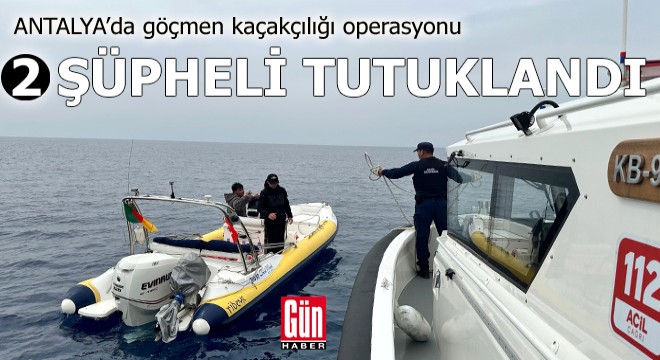 Kaş Cumhuriyet Başsavcılığı talimatları doğrultusunda Sahil Güvenlik Antalya Grup Komutanlığı İstihbarat Şube Müdürlüğü ve Sahil Güvenlik Antalya Grup Komutanlığı yüzer unsur ekipleri tarafından düzensiz göçmen kaçakçılığında kullanılacağı değerlendirilen Kamerun bayraklı sürat teknesine Kalkan açıklarında operasyon yapıldı. Teknedeki Kırgızistan uyruklu A.G. ve A.Z., yakalanarak düzensiz göçmen kaçakçılığı suçundan tutuklandı. Operasyonda Kamerun bayraklı sürat teknesi ve litrelerce yakıta el konuldu.