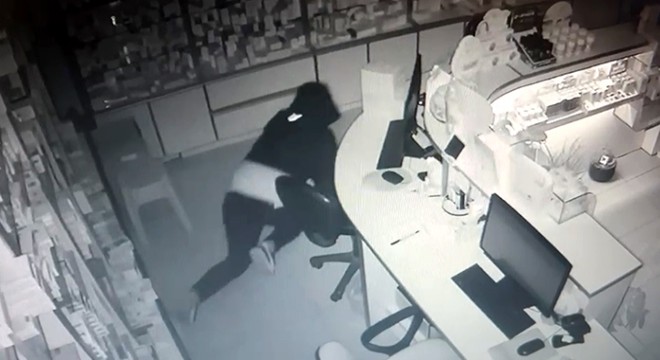 Hırsızlık şüphelisinin güvenlik kameralarına yansıyan görüntülerde ise çekmecedeki paralar ve ilaçları bir çantaya doldurduğu anlar anbean kaydedildi.