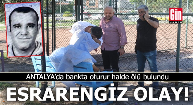 Olay, saat 08.30 sıralarında Muratpaşa ilçesi Yenigün Mahallesi 1079 sokak üzerinde yer alan Ali Peçen Zeytin Park'ta meydana geldi. Parktaki bankta oturur şekilde hareketsiz kişiyi görenler, durumu 112 Acil Çağrı Merkezi'ne bildirdi. İhbarla adrese ekipler sevk edildi. Kısa sürede ulaşan sağlık ekibi, banktaki kişinin hayatını kaybettiğini belirledi. Muratpaşa Suç ve Araştırma ile Cinayet Büro Amirliği ekiplerinin yaptığı incelemede, ölen kişinin üzerinde Murat Serttaş adına kayıtlı kimlik bulundu. Ölen kişinin çene altında dikiş izi, kolunda ise pansuman izine rastladı. Ekipler, Serttaş'ın dün Atatürk Devlet Hastanesi'ne gittiğini, saat 15.00 sıralarında taburcu edildiğini belirledi. Serttaş'ın cansız bedeni savcılık ve olay yeri inceleme ekiplerinin çalışmasının ardından kesin ölüm nedeninin belirlenmesi için Antalya Adli Tıp Kurumu Morgu'na kaldırıldı. Ekiplerin olayla ilgili incelemesi devam ediyor.