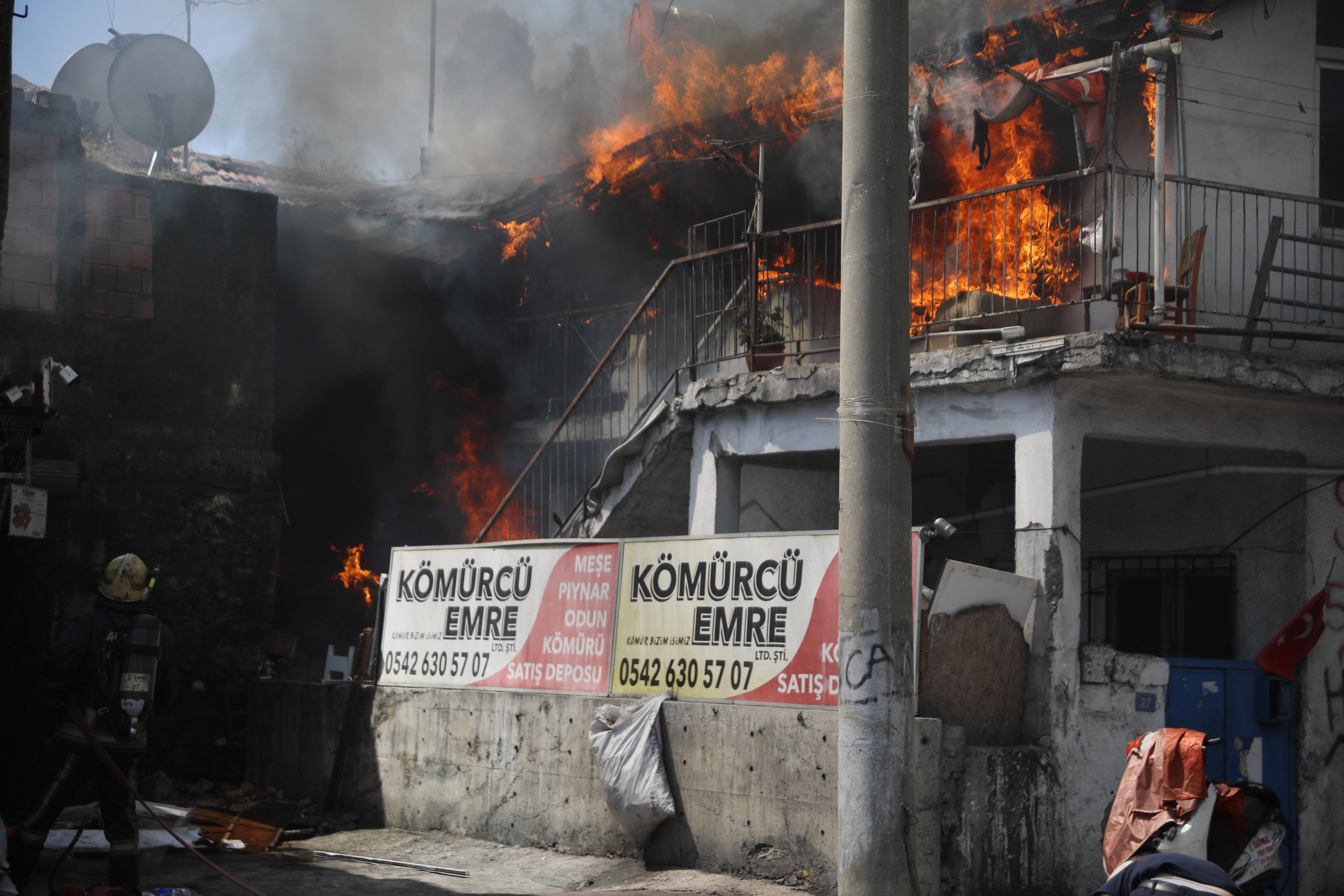 Evin yanındaki kömür satışı yapılan iş yerinin sahipleri, durumu 112 Acil Çağrı Merkezi'ne bildirdi. Bu sırada çalışanlar ise alevlerin kömürlere ulaşmaması için hortumla su sıkarak, yangına müdahale etti. Olay yerine gelen itfaiye ekipleri, yangına hızla müdahale ederek kısa sürede kontrol altına aldı.