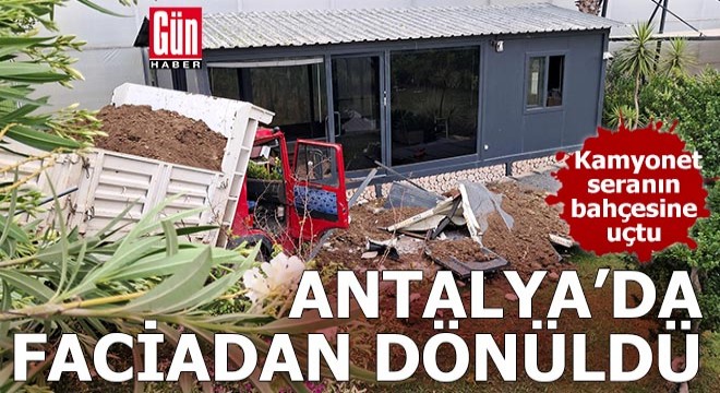 Serik- Belek turizm yolu Eminceler mevkiinde kavşakta Ramazan Kara idaresindeki toprak yüklü 07 CTK 30 plakalı kamyonet sürücüsünün karşı yönden gelen servis otobüsüne çarpmamak için manevra yaptığı sırada kontrolden çıktı. 3 metreden bir seranın bahçesinde bulunan idari binasına çarparak durabilen kamyonette sürücü yaralandı. İhbar üzerine kaza yerine sağlık ve polis ekipleri sevk edildi. Yaralı olay yerinde yapılan ilk müdahalenin ardından ambulansla hastaneye götürüldü. Yaralının sağlık durumunun iyi olduğu öğrenildi. Polis olayla ilgili inceleme başlattı.