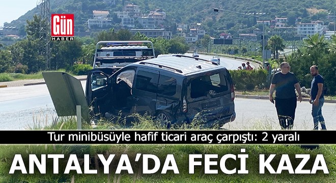 Kaza, Dinek Mahallesi D-400 kara yolu üzerindeki Alanya Yat Limanı Kavşağı'nda dün saat 15.30 sıralarında meydana geldi. İddiaya göre, kavşaktan dönmek isteyen M.S.'nin (68) kullandığı 07 BVD 215 plakalı hafif ticari araca, Antalya'dan Alanya istikametine ilerleyen Ş.A.'nın (47) kullandığı 07 CCD 198 plakalı tur minibüsü arkadan çarptı. Kazada tur minibüsü şoförü yaralanırken, araçta bulunan 1'i çocuk 3 turist ise yaralanmadan kurtuldu. Kazada hafif ticari araçta bulunan 1 kadın yolcu da yaralandı. Kazayı görenlerin 112 Acil Çağrı Merkezi'ne ihbarda bulunması üzerine bölgeye sağlık ve polis ekipleri sevk edildi. Kazada yaralananlar ambulansla Alanya Eğitim ve Araştırma Hastanesi'ne götürüldü. Kazada tur minibüsü ile hafif ticari araç çekici yardımıyla kaldırılırken, Karayolları ekipleri tarafından kumlama çalışması yapıldı.