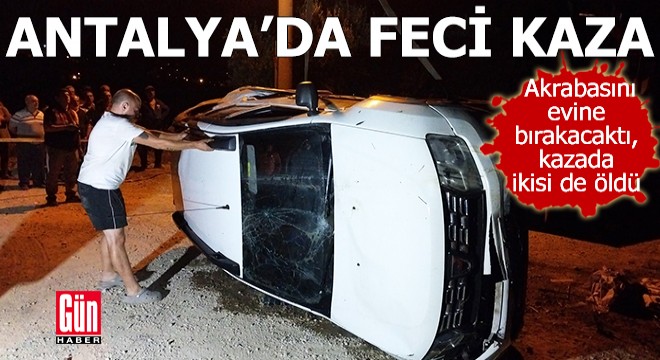 Kaza, saat 00.30 sıralarında, Kaymaz Caddesi Nergizlik mevkisinde gerçekleşti. Raşit Akdeniz'in yönetimindeki 07 AAK 810 plakalı cip, kontrolden çıkıp yaklaşık 120 santimetre derinliğindeki sulama kanalına yan düştü. Araçtaki sürücü Raşit Akdeniz ile yolcu Ali Uyanık araçtan çıkamadı. İhbarla bölgeye kurtarma ekipleri sevk edildi. Ekiplerin araçtan çıkardığı Raşit Akdeniz ve Ali Uyanık'ın yaşamlarını yitirdiği belirlendi. Cumhuriyet savcısının incelemelerinin ardından cenazeler, otopsi için Manavgat Devlet Hastanesi'ne götürüldü. Raşit Akdeniz'in akrabası olan Ali Uyanık'ı evine götürdüğü sırada kazanın meydana geldiği öğrenildi. Kazayla ilgili inceleme başlatıldı.