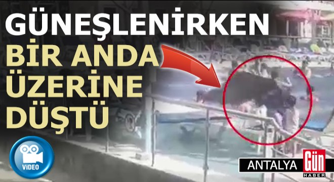 ANTALYA'nın Alanya ilçesinde tatil yaptığı otelin havuzunda şezlongda güneşlenirken üzerine çatıdan baca kapağı düşen hemşire Hanım Kaya Orakcı (37), hayatını kaybetti.