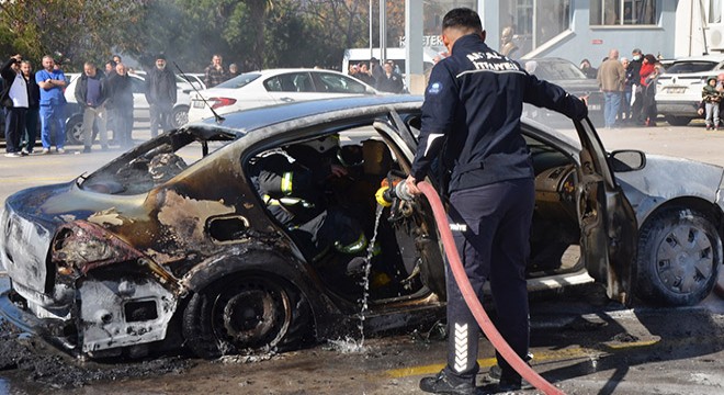 Olay, saat 12.30 sıralarında Serik Devlet Hastanesi otoparkında meydana geldi. Hastane personeli Hasan Ali Kahya'ya ait 07 DP 343 plakalı otomobil park halindeyken henüz bilinmeyen nedenle yandı. Kısa süreli panik yaşanan otoparkta, diğer araç sahipleri otomobillerini tedbir amaçlı uzaklaştırdı. İhbarla olay yerine gelen itfaiye ekibi alevi söndürdü.