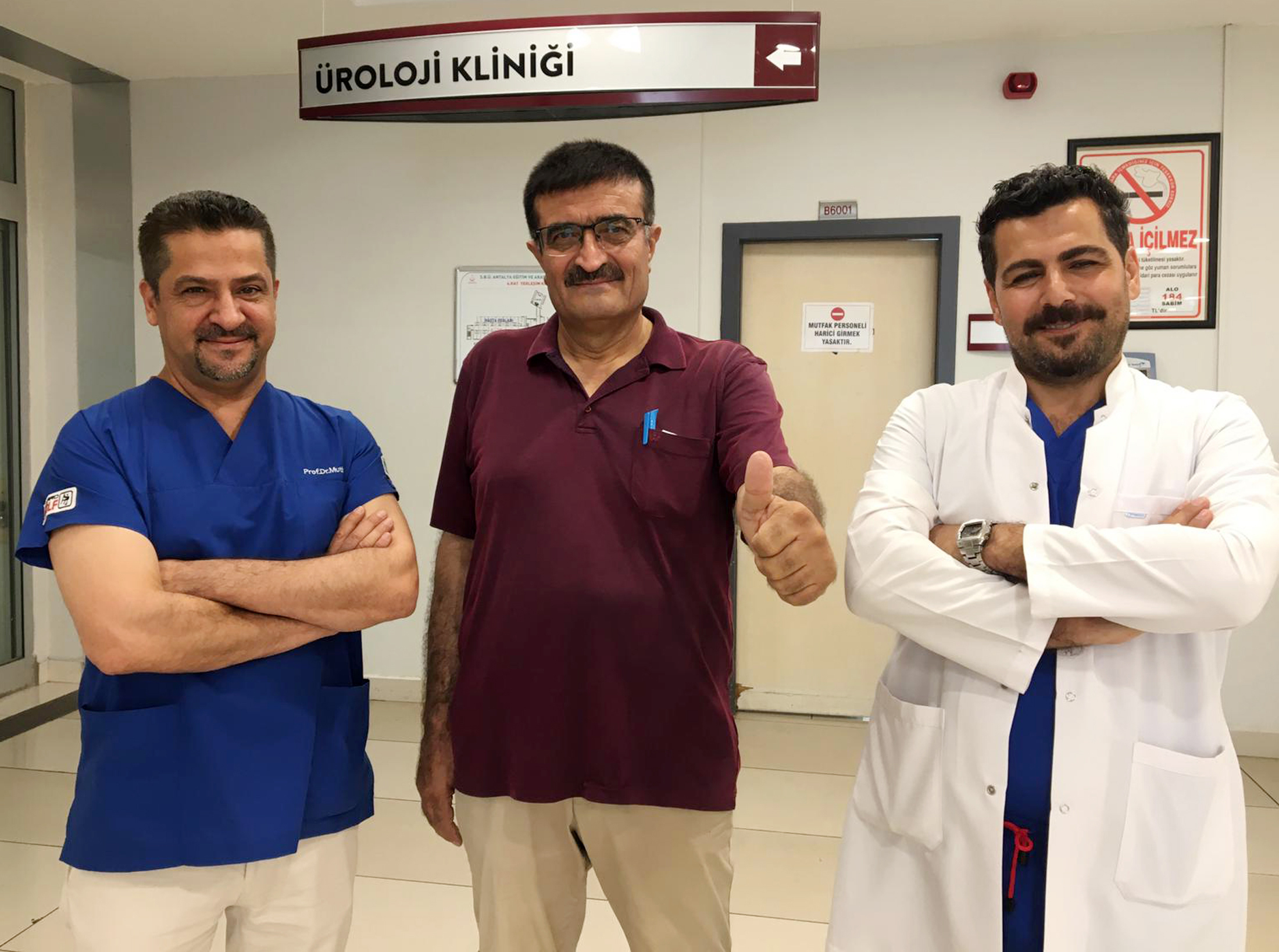 Prostat kanseri ile böbrek üstü bezi kanseri tanısı konulan Sadık Yüksel (62), yaşadığı Ankara'dan gelerek Antalya Eğitim ve Araştırma Hastanesi Üroloji Klinik Sorumlusu Prof. Dr. Mutlu Ateş'e muayene oldu. Prostat kanserinin yanı sıra böbrek üstü bezi tümörünün de belli bir boyutun üzerine çıkması nedeniyle Yüksel'e robotik cerrahi uygulanmasına karar verildi. Sadık Yüksel, 5 saat süren operasyon sonrasında sağlığına kavuştu.