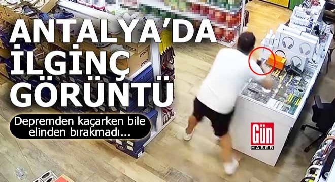 Akdeniz’de, dün saat 17.31’de Antalya’nın Alanya ilçesinin 14,98 kilometre açığında 4 büyüklüğünde deprem oldu. Paniğe neden olan deprem, ilçenin Avsallar Mahallesi'ndeki iş yerinin güvenlik kamerasına yansıdı. Görüntülerde, biri ayakta 2 kişinin sohbet ettikleri sırada sarsıntının başladığı ve koşarak dışarı çıktıkları görüldü. Ayaktaki kişinin kaçarken elindeki içecek bulunan bardağı bırakmaması dikkati çekti.