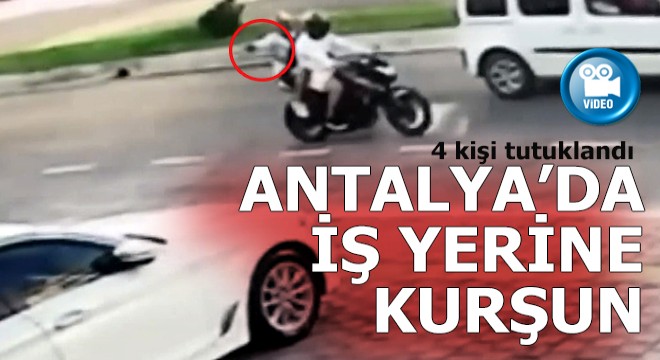 Olay, 28 Ağustos günü saat 09.00 sıralarında Muratpaşa ilçesi Güvenlik Mahallesi Turgut Reis Caddesi’nde meydana geldi. Plakasız motosikletteki 2 kişi, seyir halindeyken oto galeriye tabancayla 4-5 el ateş etti. Kurşunlar iş yerinin camlarına ve araçlara isabet etti. Saldırıda, yaralanan olmadı. Başlarında kask bulunan 2 saldırgan, iş yerini kurşunladıktan sonra hızla bölgeden uzaklaştı. Muratpaşa ilçe Emniyet Müdürlüğü ekipleri, saldırının, motosikletteki 2 kişinin de dahil olduğu bir sokak çetesi tarafından gerçekleştirildiğini belirledi. Polis, saldırıyı gerçekleştiren 2 kişi ile onlarla birlikte hareket eden 2 şüpheliyi yakaladı. Şüphelilerin evlerinde yapılan aramalarda; çok sayıda fişek, kamuflaj için kullanılan kasklar, eldivenler ve şapka ile olayda kullanılan motosiklet ele geçirildi. Emniyetteki işlemlerinin ardından adliyeye sevk edilen 4 şüpheli, tutuklandı. Hasan ALAYBEYOĞLU/ANTALYA, (DHA)-