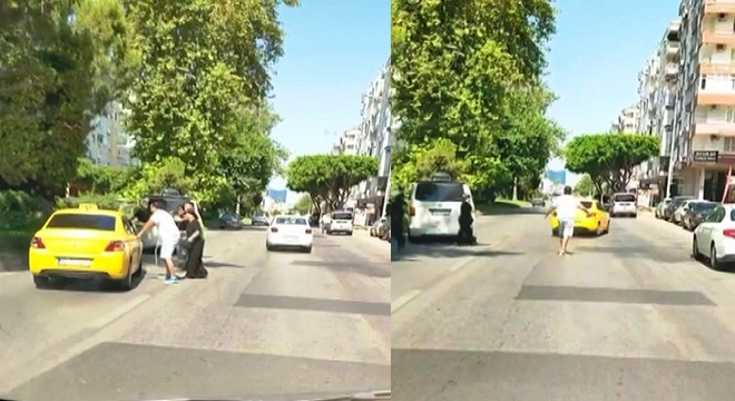 Olay, öğle saatlerinde Muratpaşa ilçesine bağlı 100. Yıl Bulvarı üzerinde meydana geldi. Duraktan müşteri alan Erman isimli taksi şoförünün önü, plakası öğrenilemeyen beyaz renkli bir minibüs tarafından kesildi. Minibüsteki 4 kişi, taksideki yolcuyu indirmeye çalıştı. Olayın ardından taksiden inen şoför, müşterisini indirmek isteyen kişilere müdahale etmek istedi. Taksideki ismi öğrenilemeyen yolcuyu indiremeyen 4 kişi, bu kez taksiye vurmaya başladı. Taksi şoförü aracına zarar veren ve yolcusunu indirmeye çalışan kişilere engel olmaya çalışırken, taksinin hareket ettiğini gördü. Takside bulunan yolcu, çalışır durumdaki taksinin şoför koltuğuna geçerek olay yerinden uzaklaştı. Taksi sürücüsü ise taksisinin arkasından koştu. O anlar vatandaşların cep telefonu kameralarına yansıdı.