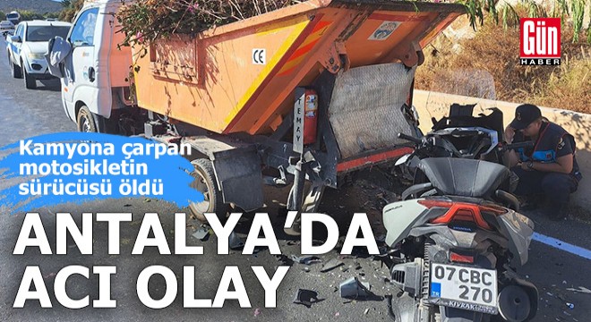 Kalkan Mahallesi'nde dün meydana gelen kazada, Yusuf Şamil Kıranşal kullandığı 07 CBC 270 plakalı motosikletle, S.K. yönetimindeki 07 BNY 475 plakalı belediyeye ait atık toplama aracına arkadan çarptı. Yoldan geçen diğer sürücülerin ihbarı üzerine olay yerine jandarma ve sağlık ekibi yönlendirildi. Kazada yaralanan motosiklet sürücüsü Yusuf Şamil Kıranşal, sağlık ekiplerince Kaş Devlet Hastanesi’ne götürüldü. Kıranşal, hastanede hayatını kaybetti.