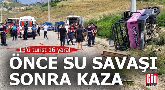 Kaza, saat 10.30 sıralarında Manavgat'a bağlı Oymapınar Mahallesi'nde meydana geldi. Alanya'da faaliyet gösteren bir firmaya ait olan Özcan Akkaya'nın (60), 34 BSC 990 plakalı üstü açık safari aracıyla aynı firmaya ait olan Ferhat Arslan'ın (45), 34 BSS 865 plakalı safari aracını kullanıyordu. Araçlardan biri yolun sağ tarafında bulunan beton direğe çarparak yan yattı. Kazanın ardından bölgede çok sayıda jandarma, sağlık ve kurtarma ekibi sevk edildi.