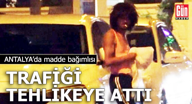 Olay, dün saat 21.00 sıralarında Muratpaşa ilçesi Kızılarık Mahallesi Köroğlu Bulvarı üzerinde meydana geldi. Cadde üzerinde otomobiller seyir halinde olduğu sırada, kimliği belirsiz madde bağımlısı bir kişi, araçların üzerine yürüdü. Otomobillerin selektör yapıp, kornaya basmasıyla kenara çekilen madde bağımlısı, dakikalar boyunca ana yol üzerinde yürümeye devam etti. O anlar kameraya yansıdı. Yol üzerinde uzun süre yürüyen madde bağımlısı daha sonra gözden kayboldu.