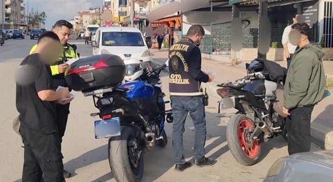 Antalya İl Emniyet Müdürlüğü'nün ekiplerince, toplam 257 personelin katılımıyla oluşturulan 94 ekiple il genelinde 39 uygulama noktasında, motosiklet hırsızlıkları ve motosikletlerin karıştığı suçların azaltılması, motosiklet tamir ve yedek parça satışı yapan iş yerlerinin denetlenmesi ile şüphelilerin tespit ve yakalanması amacıyla denetimler yapıldı.