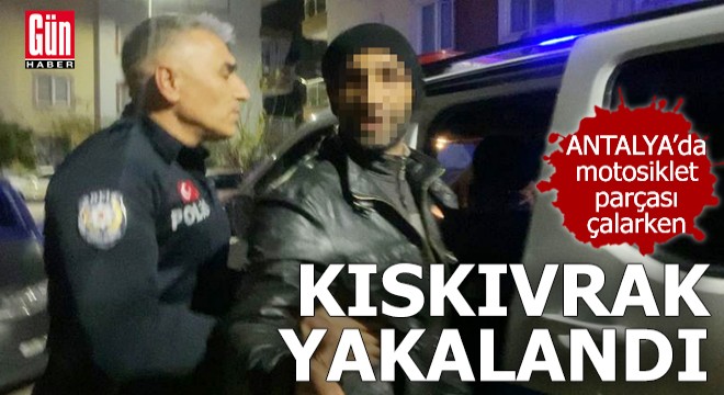 Olay dün saat 23.30'da Kepez ilçesi Yeşilyurt Mahallesi 4341 Sokak'ta yaşandı. Park halindeki 07 AHK 243 plakalı kamyonet çevresinde etrafı kolaçan eden Ö.Ö., çevredekilerin dikkatini çekti. Fark edilmediğini düşünen Ö.Ö., kamyonetin kasasına çıkarak, motosiklet parçalarını seçmeye başladı. Hırsızın sesini duyan kamyonet sahibi Tuğba G., aracının başına giderek şüpheliye suçüstü yaptı. Apartmanda oturanların ihbarda bulunmasıyla olay yerine polis ekipleri yönlendirildi. Şüphelinin kaçmasına engel olan mahalleli, polis gelene kadar başında bekledi. Şüpheli, polis tarafından gözaltına alınarak Kepez İlçe Emniyet Müdürlüğü'ne götürüldü. Kamyonet sahibi Tuğba G., Ö.Ö'den şikayetçi oldu.