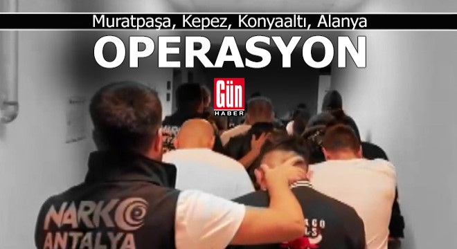 Muratpaşa, Konyaaltı, Kepez ve Alanya ilçelerinde 4 ayrı adreste yapılan operasyon kapsamında 575 adet sentetik kannabinoid A4 maddesi (yaklaşık 3 milyon 676 bin kullanımlık), 30 bin adet ecstasy hap, 778 gram kokain, 738 gram fubinica (sentetik kannabinoid hammaddesi), 629 gram esrar, 238 adet sentetik ecza hap, 5 adet hassas terazi, 2 adet tabanca, 10 adet dolu fişek, suçtan elde edildiği değerlendirilen döviz ve Türk lirası ele geçirildi. 3 şüpheli hakkında 'Kullanmak için uyuşturucu veya uyarıcı madde satın almak/ kabul etmek/ bulundurmak/ kullanmak' suçundan, 15 şüpheli hakkında 'Uyuşturucu veya uyarıcı madde imal ve ticareti' suçundan adli işlem yapıldı.
