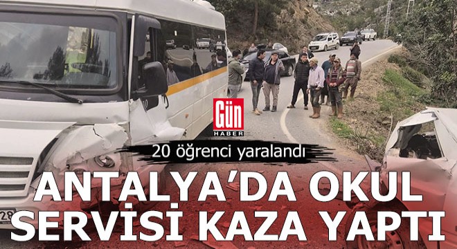 Olay, saat 15.30 sıralarında Gazipaşa’ya bağlı Karalar Mahallesi’nde meydana geldi. Karalar İlk ve Ortaokulu’ndan aldığı öğrencileri taşıyan sürücüsünün kimliği öğrenilemeyen 07 C 50028 plakalı minibüs ile karşı yönden gelen 07 NYB 79 plakalı kamyonet çarpıştı. Çarpışmanın şiddetiyle araçlarda maddi hasar meydana gelirken, minibüste bulunan 20 öğrenci hafif şekilde yaralandı. İhbar üzerine olay yerine sağlık ve jandarma sevk edildi. Gazipaşa Devlet Hastanesi’ne sevk edilen öğrencilerin sağlık durumlarının iyi olduğu öğrenildi.