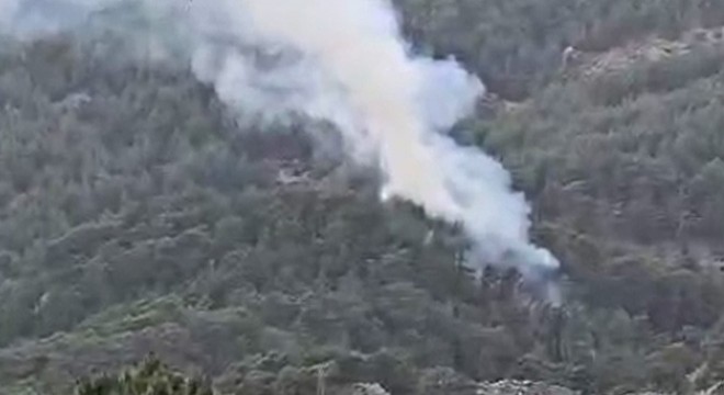Yaklaşık 1 hektarlık alanın zarar gördüğü yangını soğutma çalışmaları sürüyor.