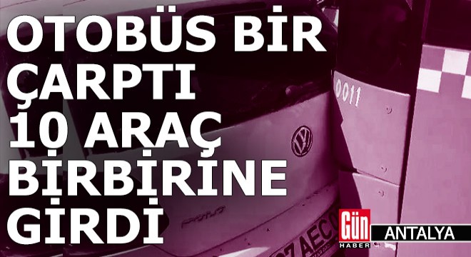 Kaza, saat 08.30 sıralarında Kepez ilçesi Atatürk Mahallesi Yıldırım Beyazıt Caddesi üzerinde meydana geldi. Gökmen G. (48) idaresindeki 07 AU 0011 plakalı özel halk otobüsü, trafik ışıklarında bekleyen araçlara çarptı. Çarpmanın etkisiyle öndeki 10 araç bağlantılı şekilde birbirine çarptı. Kazada halk otobüsü şoförü Gökmen G., otobüsteki 1 yolcu ve diğer araçlardan birinde bulunan 1 kişi olmak üzere toplam 3 kişi yaralandı. Kazaya karışan araçmların tamamında maddi hasar meydana geldi. Yaralılar ihbarla yönlendirilen sağlık ekipleri tarafından çevredeki hastanelere sevk edildi. Araçlar ise çekiciyle bulundukları yerden kaldırıldı.