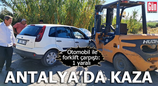 Kaza saat 11.30 sıralarında Serik Belkıs yolunda meydana geldi. Uğur Demirörs idaresindeki 07 YES 35 plakalı otomobil ile karşı yönden gelen Yavuz İsa Mert idaresindeki forklift çarpıştı. Kazada otomobil sürücüsü Demirörs yaralandı.