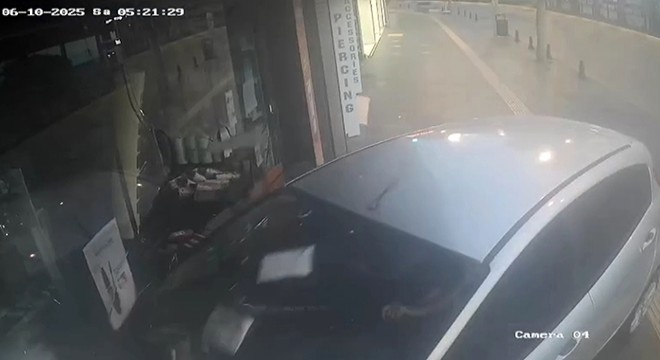 Kaza, Aşağı Hisar Mahallesi Antalya Caddesi'nde dün saat 05.30 sıralarında meydana geldi. Onur Şenel, kullandığı 07 AYS 872 plakalı otomobilin hakimiyetini kaybetti. Otomobilin kaldırımdaki dubaları devirip kozmetik mağazasının vitrinine çarptığı kazayı sürücü Şenel yara almadan atlattı. Kazada mağazada hasar meydana geldi. Kaza, iş yerinin güvenlik kamerasına yansıdı. Görüntüde otomobilin kaldırımı aşıp vitrine çarpması yer aldı.