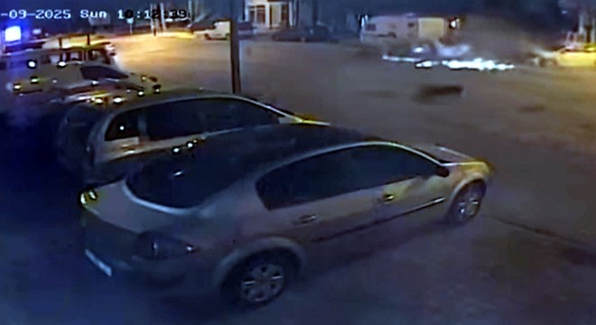 Kaza anı bir iş yerinin güvenlik kamerasına yansıdı. Görüntüde otomobilin park halindeki araçlara çarpıp, savrulduğu anlar yer aldı.