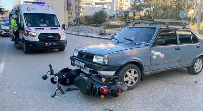 Kaza saat 08.00 sıralarında Kökez Mahallesi'nde meydana geldi. M.Y.'nin kullandığı 42 KD 816 plakalı otomobille A.K.S.'nin kullandığı ve plakasız olduğu öğrenilen motosiklet çarpıştı. Motosiklet otomobilin altında kalırken, sürücü ise son anda kurtuldu. Kazada yaralanan motosiklet sürücüsü haber verilmesi üzerine olay yerine gelen sağlık ekiplerinin ilk müdahalesinin ardından ambulansla Serik Devlet Hastanesi'ne götürüldü. Yaralının sağlık durumunun iyi olduğu öğrenildi. Polis kazayla ilgili inceleme başlattı.