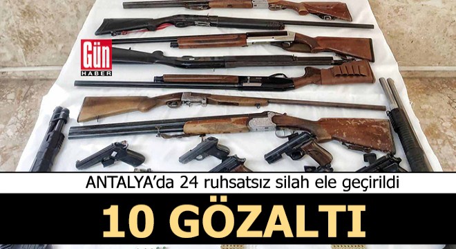 Antalya Cumhuriyet Başsavcılığı'nın talimatları doğrultusunda, Antalya İl Jandarma Komutanlığı ekipleri, ruhsatsız silah ve mühimmat bulunduran şüphelilere yönelik operasyon düzenledi. Korkuteli ilçesinde gerçekleştirilen operasyonda, 10 tabanca, 14 av tüfeği, 11 şarjör, 145 kurusıkı tabanca fişeği, 90 av tüfeği fişeği ve 20 tabanca fişeği ele geçirildi. Olayla ilgili 10 şüpheli hakkında adli ve idari soruşturma başlatıldı.