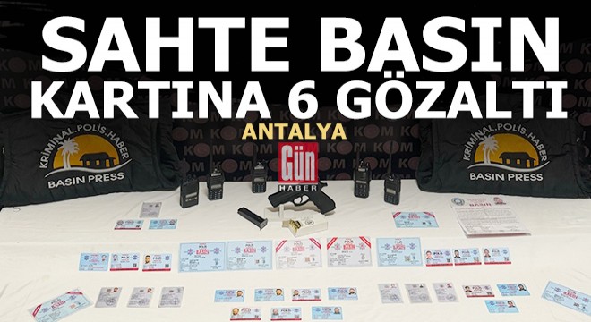 Basın kartı ve basın araç kartı vererek nitelikli dolandırıcılık ve resmi belgede sahtecilik yaptıkları tespit edilen Ali Can, Enes Bayer, Kadir Bayer, Ali Çelik, Uğur Koyuncu ve Hakan Toktay, eş zamanlı operasyonla yakaladı. Yapılan aramalarda sahte olduğu değerlendirilen 6 adet basın kartı, 5 adet basın araç kartı, 4 adet telsiz belgesi, 4 adet telsiz, 11 adet basın yeleği, 6 adet dernek üyelik kartı, 1 adet dernek gazeteci belgesi, 23 adet evrak fotokopisi, 1 adet not kağıdı, 1 adet polis gazetesi yetki görev belgesi, 1 adet tabanca, 12 adet 9 mm fişek ele geçirildi.