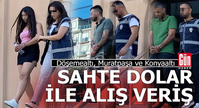 Döşemealtı'nda bir kadının sahte Amerikan Doları ile marketlerden alış veriş yapma yöntemiyle piyasaya sahte para sürdüğü yönündeki ihbar üzerine Döşemealtı Emniyet Müdürlüğü ekipleri operasyon başlattı. Suç Önleme ve Soruşturma Büro Amirliği ekipleri yaklaşık 40 saat süren çalışma sonucunda A.B. (30) adlı hakaret ve tehditten suç kaydı bulunan kadının ilçe merkezindeki iki marketten sahte 100 Amerikan Doları ile alış veriş yaptığını işyeri kameraları ile tespit etti.