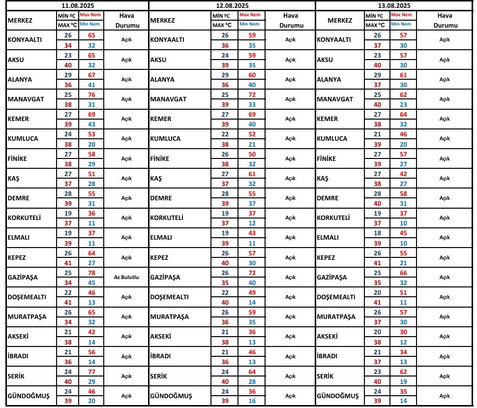 SICAKLIK PAZARTESİ-SALI VE ÇARŞAMBA HANGİ İLÇEDE KAÇ DERECE OLACAK?