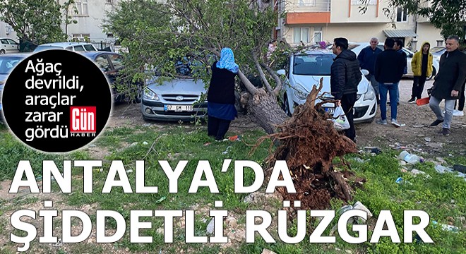 Serik'e bağlı Yeni Mahalle'de dün saat 18.00 sıralarında etkili olan şiddetli rüzgar nedeniyle kökünden sökülen ağaç park halindeki araçların üzerinde devrildi. Araçlarda küçük çaplı hasar oluşurken vatandaşlar kendi imkanlarıyla araçlarını kurtardı. Devrilen ağacın kaldırılması için çalışma yapıldı.