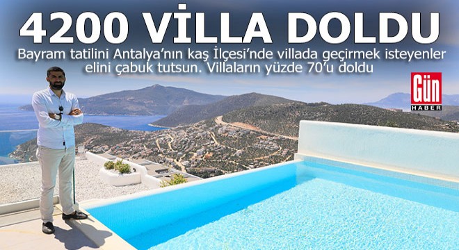 5 yıldızlı otellere alternatif olarak tercih edilen villalar, denize mesafesine, manzarasına, büyüklüğüne, havuz çeşidine göre fiyatlandırılıyor. Kurban Bayramı öncesinde ilginin arttığı villalarda, rezervasyonlar da dolma noktasına geldi. TÜRSAB Batı Antalya Bölge Başkanı Hüseyin Gencer, bölgede yaklaşık 6 bin villa olduğunu söyledi. Lüks villanın tatilcilerce çok tercih edildiğini belirten Gencer, her yıl sektörün yüzde 10-20 oranında büyüdüğünü söyledi. Kurban Bayramı tatilinin 9 gün olması ile tatil sezonuna giriş için de bir fırsat olduğunu belirten Gencer, "Geçen yıla oran ile rezervasyonlar artmaya başladı. Şu anda yüzde 70 oranında doldu. Temmuz ayında yüzde 100 doluluk bekleniyor" dedi.