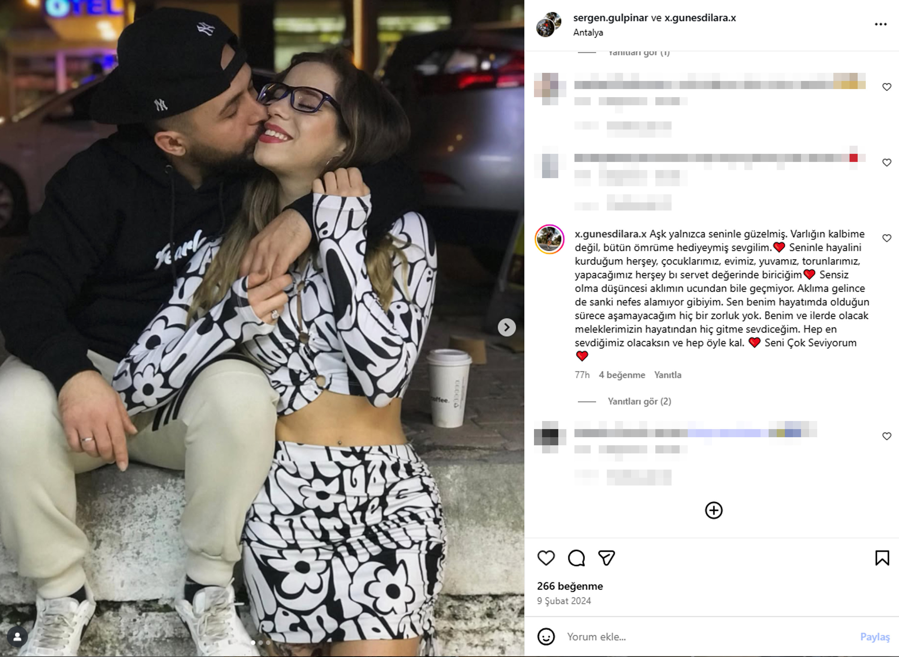 "Aşk yalnızca seninle güzelmiş. Varlığın kalbime değil, bütün ömrüme hediyeymiş sevgilim. Seninle hayalini kurduğum her şey, çocuklarımız, evimiz, yuvamız, torunlarımız, yapacağımız her şey servet değerinde biriciğim. Sensiz olma düşüncesi aklımın ucundan bile geçmiyor. Aklıma gelince de sanki nefes alamıyor gibiyim. Sen benim hayatımda olduğun sürece aşamayacağım hiçbir zorluk yok. Benim ve ilerde olacak meleklerimizin hayatından hiç gitme sevdiceğim. Hep en sevdiğimiz olacaksın ve hep öyle kal. Seni çok seviyorum."