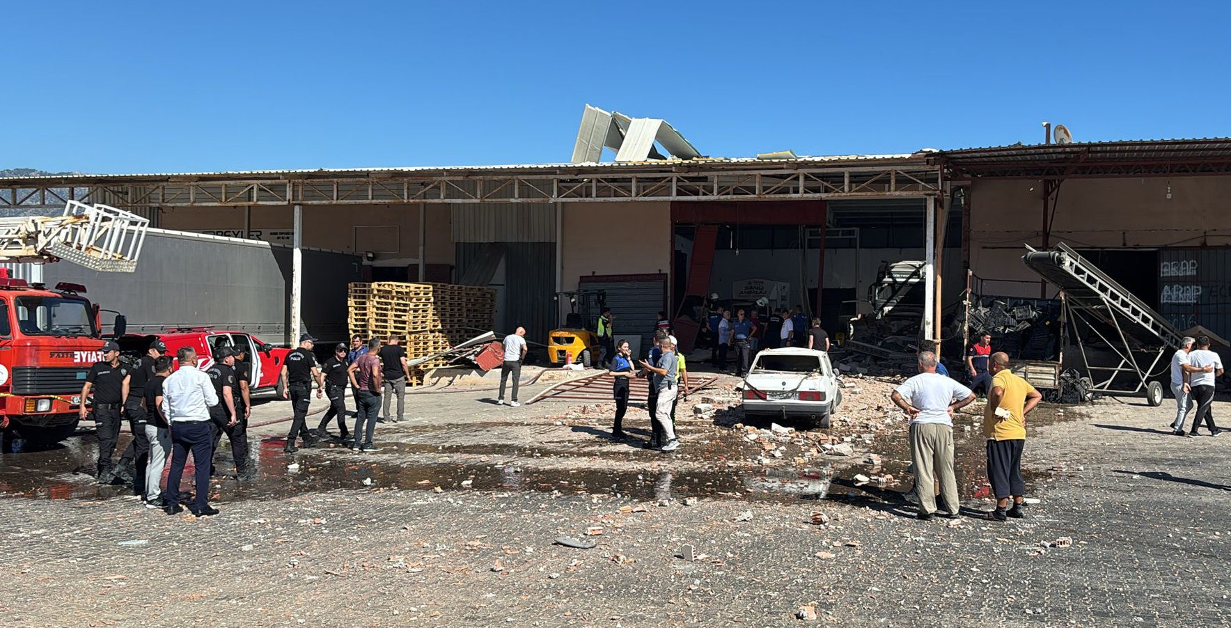 Antalya'nın Demre ilçesindeki toptancı halindeki iş yerinde, saat 15.00 sıralarında meydana gelen patlama anı güvenlik kamerasına yansıdı. Patlamanın ardından iş yerinin duvarlarının parçalanması, çevreye çok sayıda tuğla ve beton parçasının savrulması yer aldı.