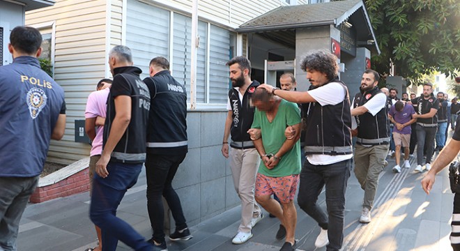 Antalya İl Emniyet Müdürlüğü'ne bağlı Narkotik Şube Müdürlüğü ekipleri ve Kemer İlçe Emniyet Müdürlüğü ekipleri, Cumhuriyet Başsavcılığı talimatlarıyla 'torbacı' olarak tabir edilen uyuşturucu satıcılarına yönelik operasyon düzenledi. Operasyon kapsamında gözaltına alınan 7 kişi dün İlçe Emniyet Müdürlüğü'ne ait Kemer Polis Merkezi Amirliği'ne getirildi. Buradaki işlemlerinin ardından bugün Kemer Devlet Hastanesi'nde sağlık muayenesinden geçirilen şüpheliler sonrasında Kemer Adliyesi'ne getirildi. Hakim karşısına çıkan şüphelilerden B.K. ve M.T. tutuklanırken, 5 kişi ise adli kontrolle serbest bırakıldı. (DHA)
