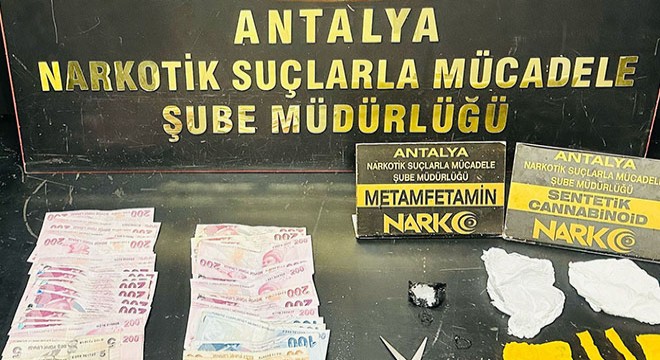 Antalya İl Emniyet Müdürlüğü Narkotik Suçlarla Mücadele Şube Müdürlüğü birimleri, uyuşturucu maddelerin kaynağının kurutulması, ticaretinin ve kullanımının engellenmesi amacıyla çalışmalar gerçekleştirdi. Muratpaşa, Kepez ve Konyaaltı ilçelerinde önceden belirlenen 15 adrese, 150 personel ve 4 narkotik madde arama köpeği ile yapılan operasyonlarda, 160 gram metamfetamin, 120 adet yaklaşık, 250 bin kullanımlık sentetik kannabinoid(A4), 78 sentetik ecza, 25 gram esrar, 5 makas, hassas terazi, tabanca, 10 fişek ve uyuşturucu madde ticaretinden elde edildiği değerlendirilen yüklü miktarda Türk Lirası ele geçirildi.