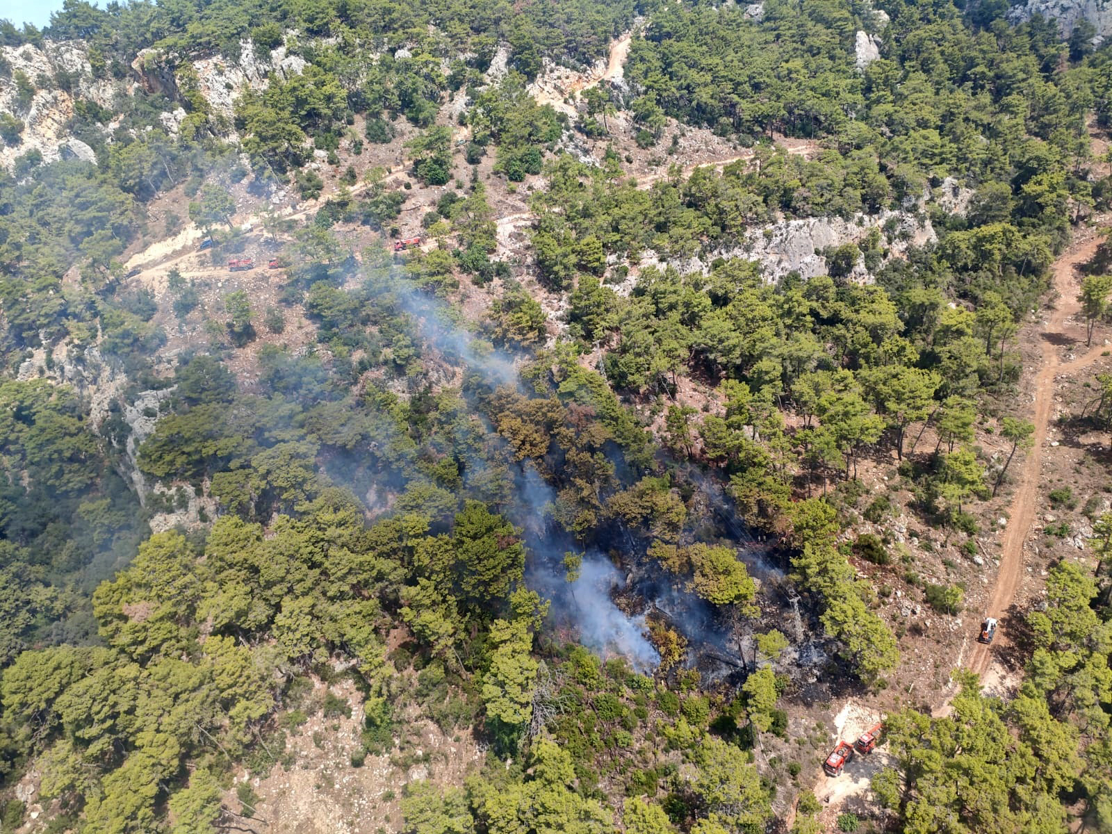 2 helikopter, 1 uçak, 8 arazöz, 3 su ikmal aracı, 2 ilk müdahale aracı ile çok sayıda yangın işçisi ile yangına müdahale ediliyor.