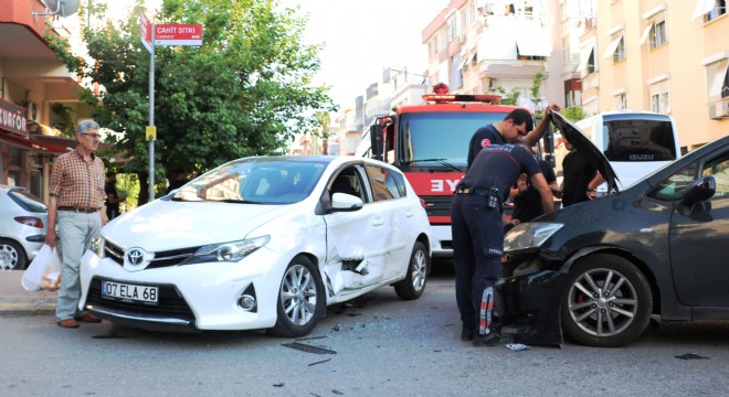 Kaza, dün saat 18.00 sıralarında Kepez İlçesi'ne bağlı Ulus Mahallesi Yahya Kemal Caddesi üzerinde meydana geldi. İddiaya göre; karşı istikamette seyir halinde olan K.H. kontrolündeki 07 BJT 171 plakalı otomobil ile yolun diğer tarafından gelen ve dönmek üzere olan A.A. konrolündeki 07 ELA 68 plakalı otomobil çarpıştı. Çarpışmanın etkisiyle otomobilinin kapı kısmından darbe alan A.A. otomobiline sıkıştı. Kazayı gören çevredeki vatandaşlar durumu hemen 112 Acil Çağrı Merkezi'ne bildirdi. İhbarla bölgeye polis, sağlık ve itfaiye ekipleri sevk edildi. Çarpışmanın etkisiyle otomobiline sıkışan A.A.'yı itfaiye ekipleri otomobilinden çıkartarak, sağlık ekiplerine teslim etti. Yaralı A.A. bölgedeki özel bir hastaneye sevk edildi. (DHA)