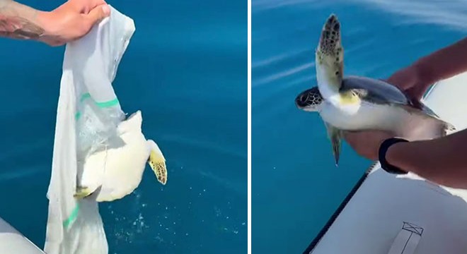Oba Mahallesi açıklarında dün bir grup amatör balıkçı, su yüzeyinde çuval ve misinaya dolanmış yavru deniz kaplumbağasını gördü. Tekneye aldıkları kaplumbağayı bıçakla kestikleri çuvaldan kurtaran balıkçılar, boynuna dolanmış misinayı da çıkardı. Balıkçılar ardından deniz kaplumbağasını denize bıraktı. Balıkçılar, deniz kaplumbağasını kurtarma anlarını cep telefonu kamerası ile kaydetti. Görüntülerde; misina ve çuvalı keserken tedirgin olan balıkçıların deniz kaplumbağasını bırakması ve "Bizim köylü hadi yürü" demesi yer aldı.