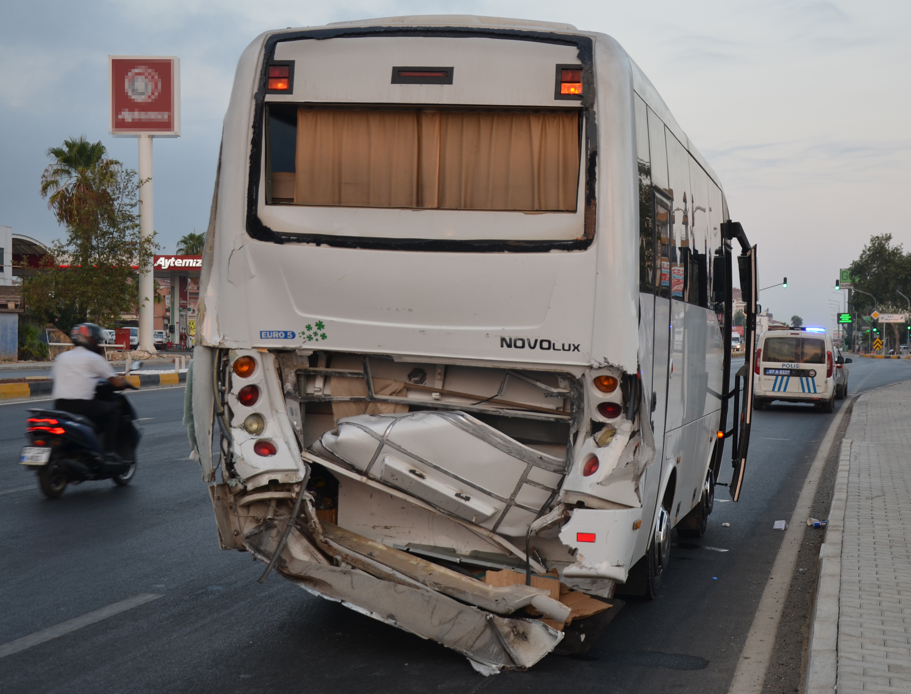 Kaza, saat 05.30 sıralarında Sanayi kavşağında meydana geldi. Alanya'dan Antalya yönüne giden Doğan Özer'in (29) kullandığı 07 AOA 053 plakalı otobüs, kırmızı ışıkta bekleyen Duran Carcar'ın kullandığı 07 BOU 796 plakalı midibüse arkadan çarptı.