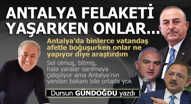 Peki, ya Antalya’da doğan, büyüyen, ekmeğini yiyen, siyasette hala bu kent sayesinde varlığını sürdüren eski bakan, yani Mevlüt Çavuşoğlu selin olduğu gün neredeydi acaba?..